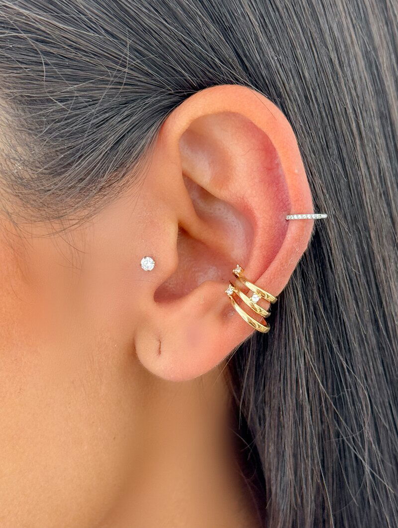 Piercing Fake Folheado a Ouro 18k e Prata Três Fios com Zircônias