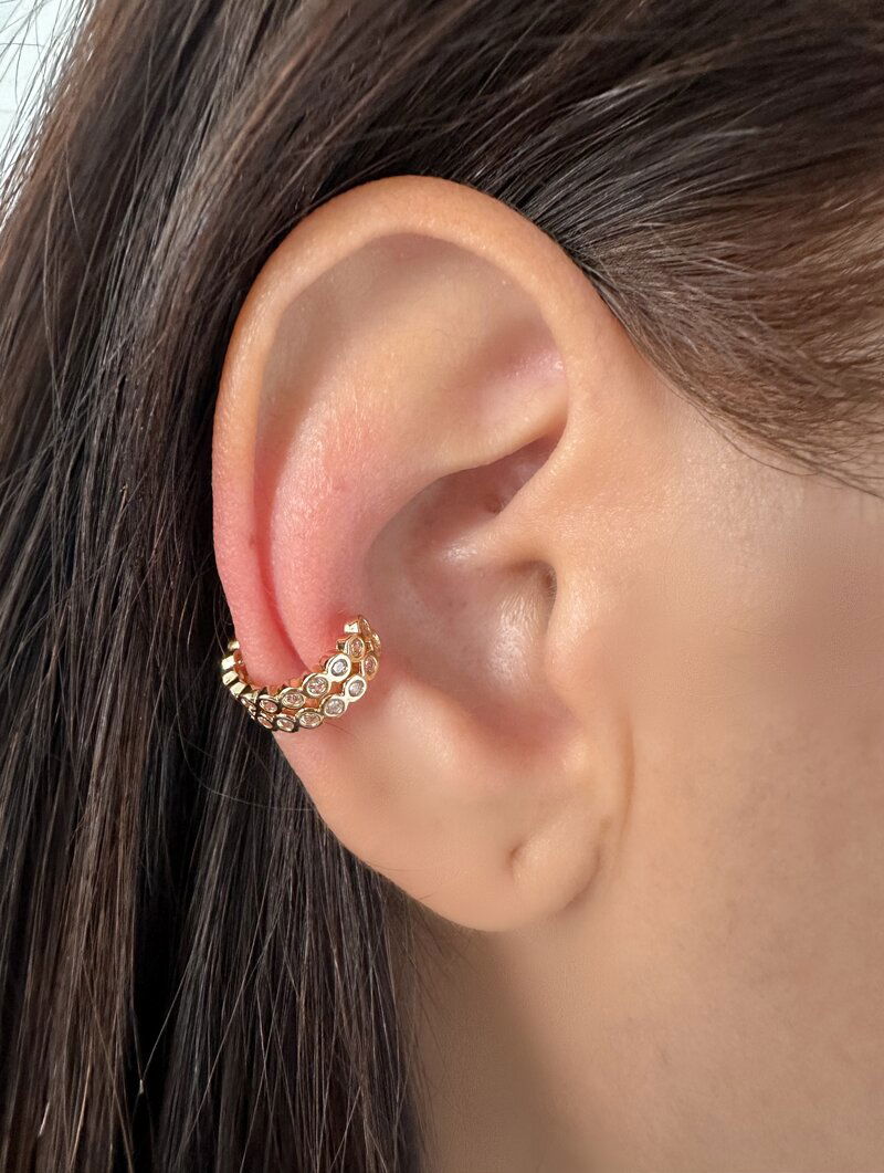 Piercing Fake Folheado e a Ouro 18K e a Prata Dois Fios com Zircônia.