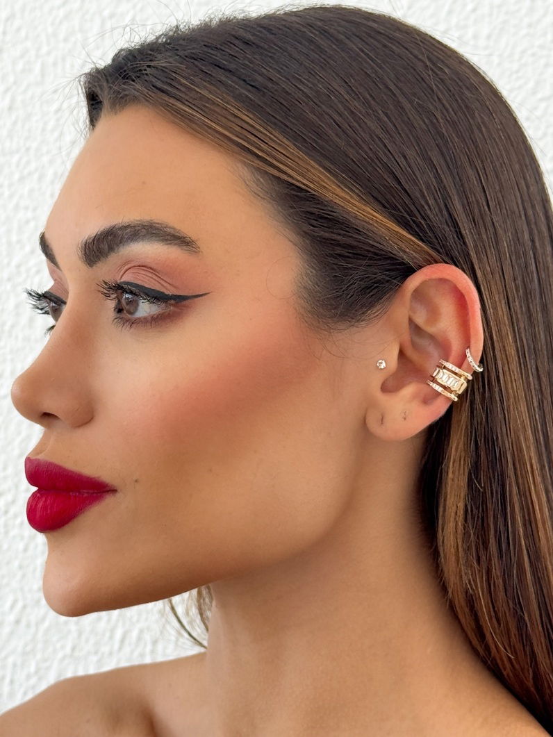 Piercing Folheado a Ouro 18k e Prata Com Zircônias e Cristais