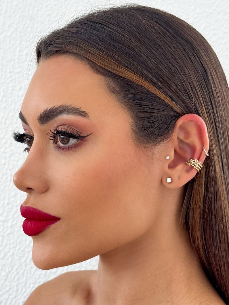 2. Piercing Folheado a Ouro 18k e Prata Fios Torcidos Com Flor