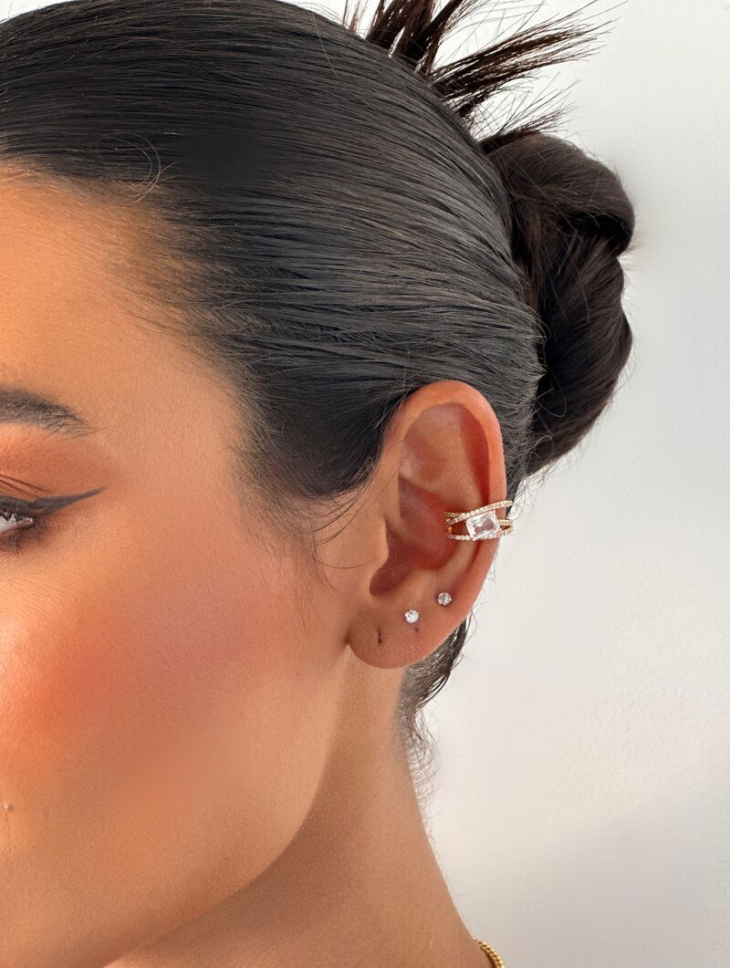 3. Piercing Folheado a Ouro 18k e Prata Três Fios Cravejados com Pedra de Zircônia
