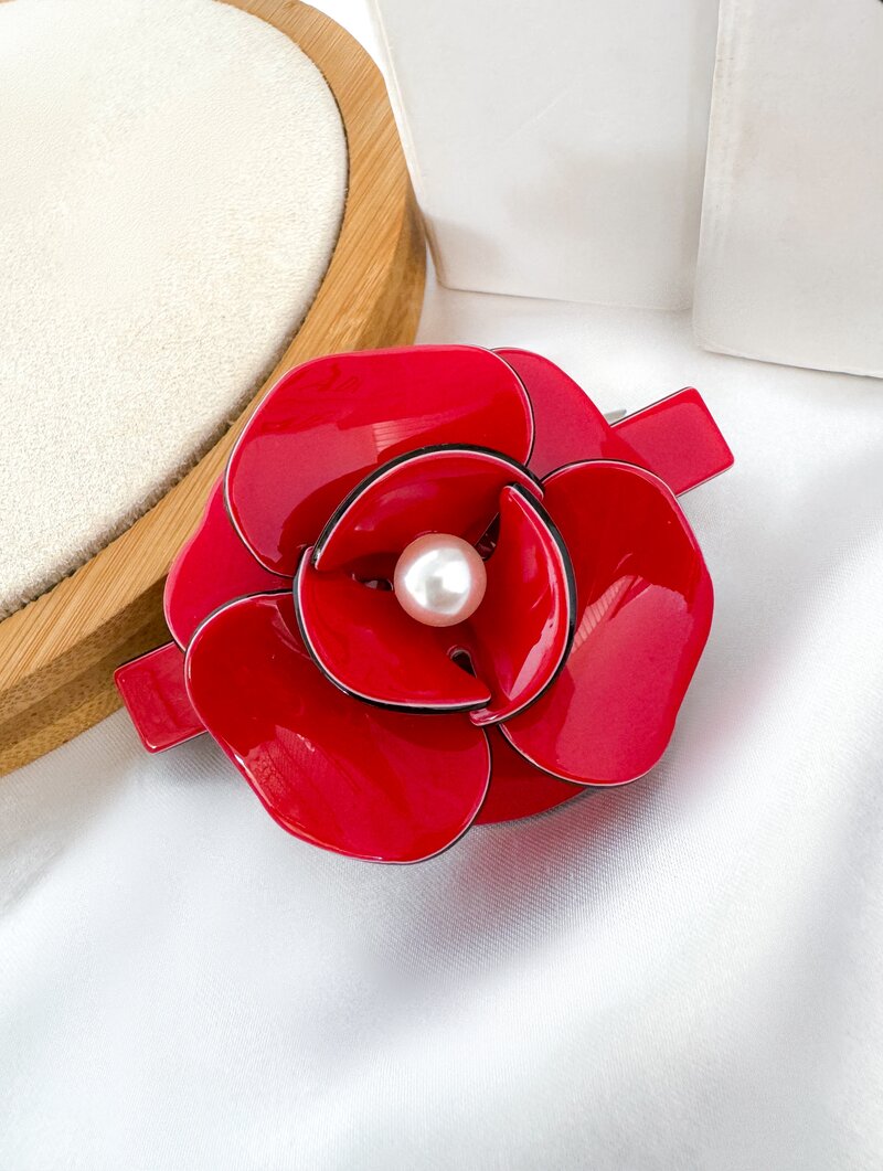 3. Presilha Acrílico Flor com Pérola Central