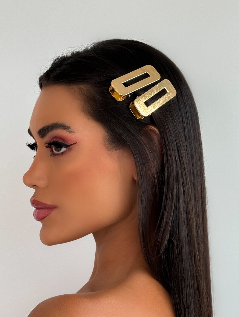 3. Presilha Folheada a Ouro 18k e Prata Retangular Escovada