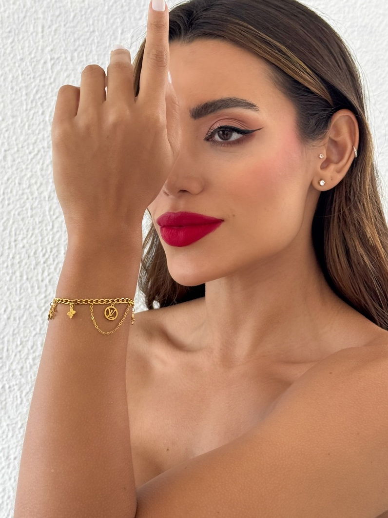 2. Pulseira Aço Inoxidável Folheada a Ouro 18k Elo Grumet e Pingentes Inspiração Grandes Marcas