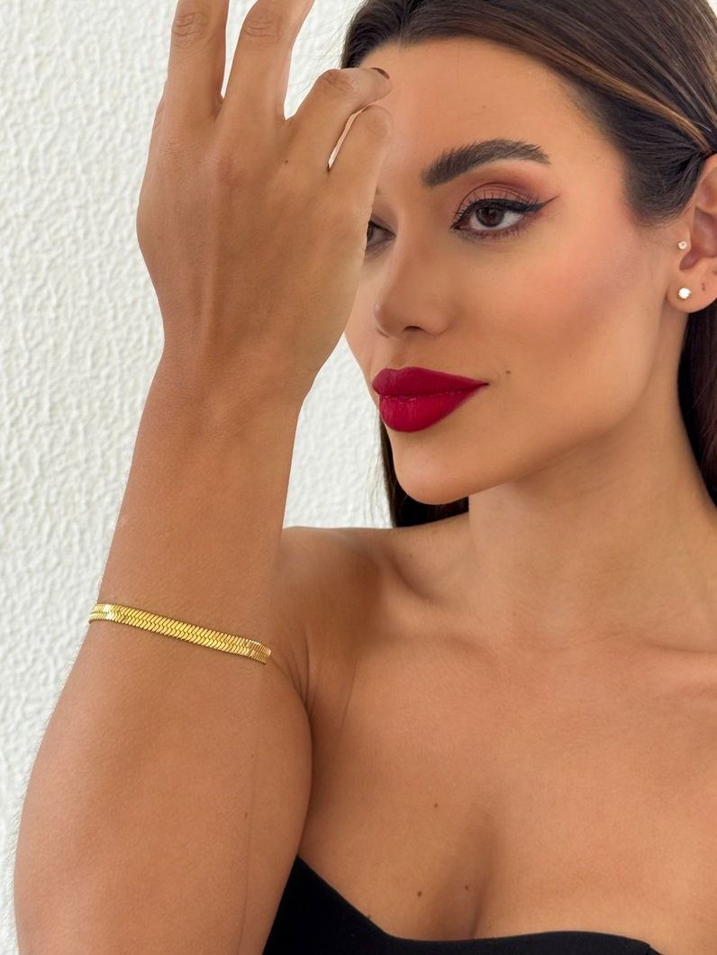 Pulseira Aço Inoxidável Folheada a Ouro 18k Fita Laminada