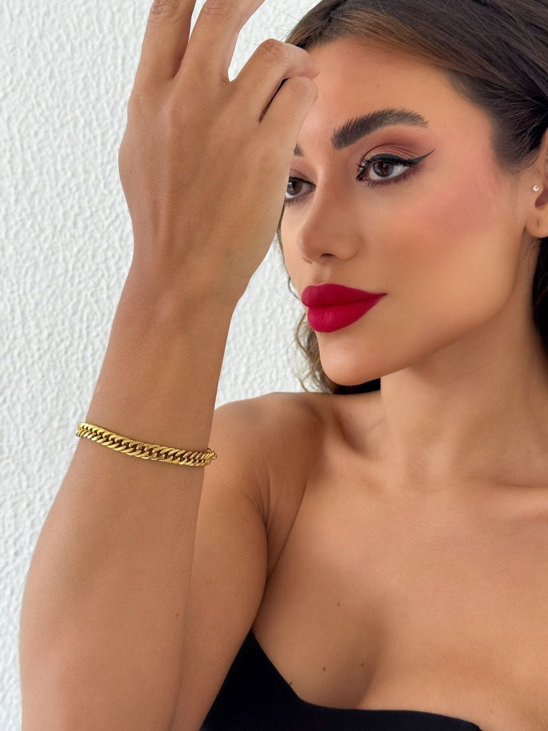 3. Pulseira Aço Inoxidável Folheado a Ouro 18k Elos Grossos