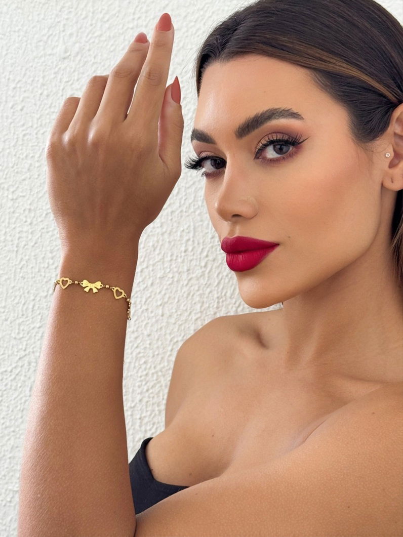 Pulseira Aço inoxidável Ouro Laço Com Coração Vazado