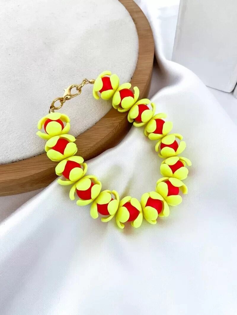 Pulseira com miçangas de flores e esferas