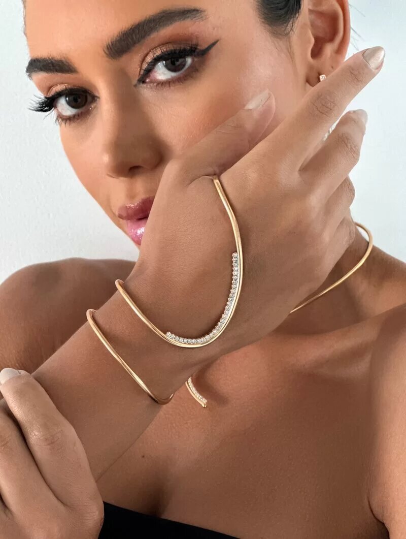 3. Pulseira de Mão Folheada a Ouro 18k e Prata 925 Aro Anita