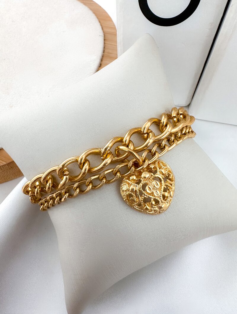 Pulseira Dupla Folheada a Ouro 18k com Coração Trabalhado