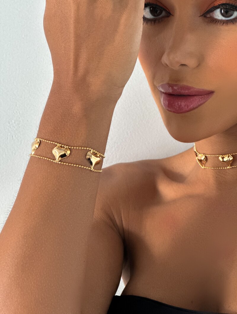 3. Pulseira Folheada a Ouro 18k Cinco Corações