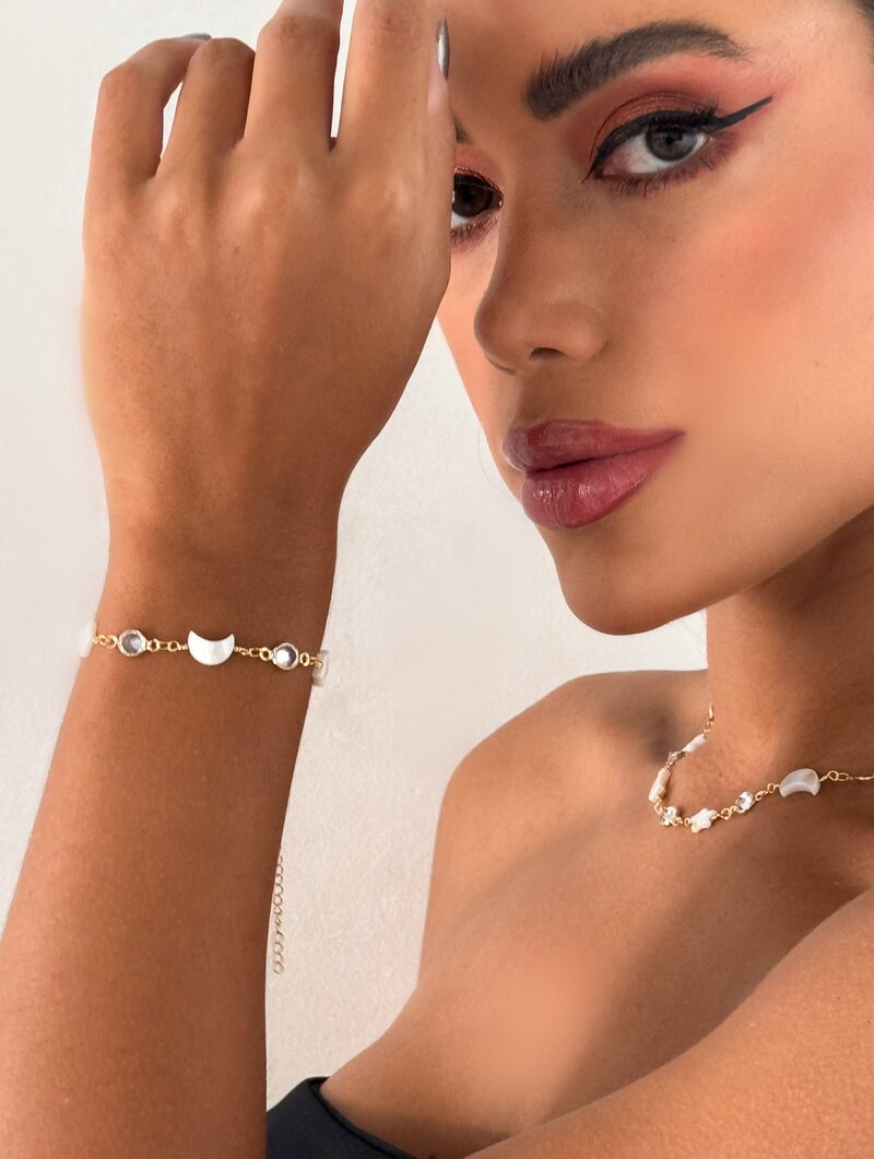 3. Pulseira Folheada a Ouro 18k com Pedras Naturais e Zircõnias