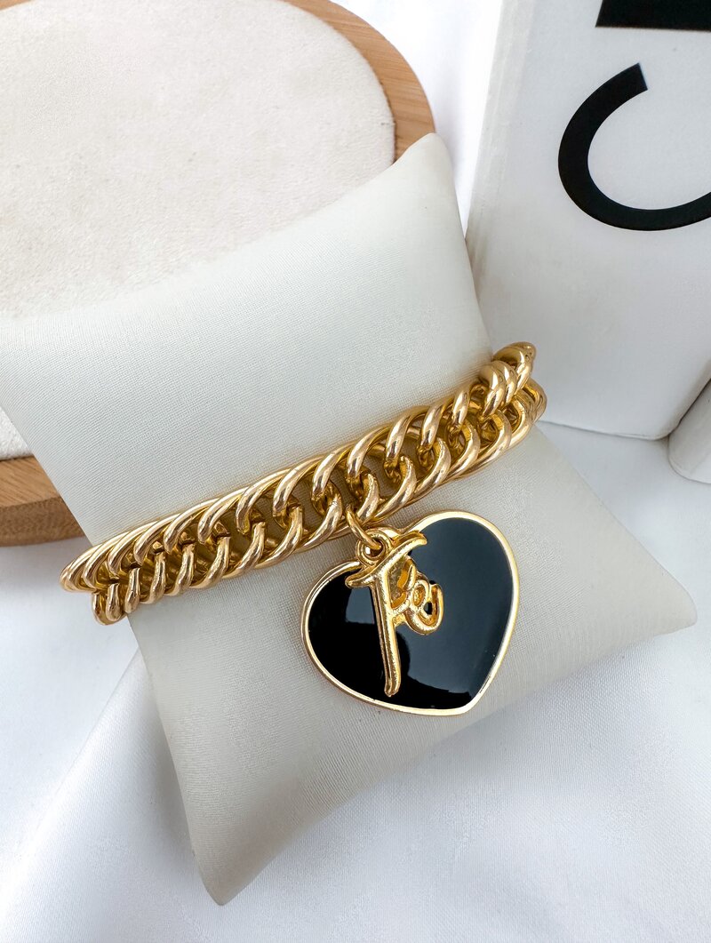 Pulseira Folheada a Ouro 18k Coração Resinado Escrita Fé