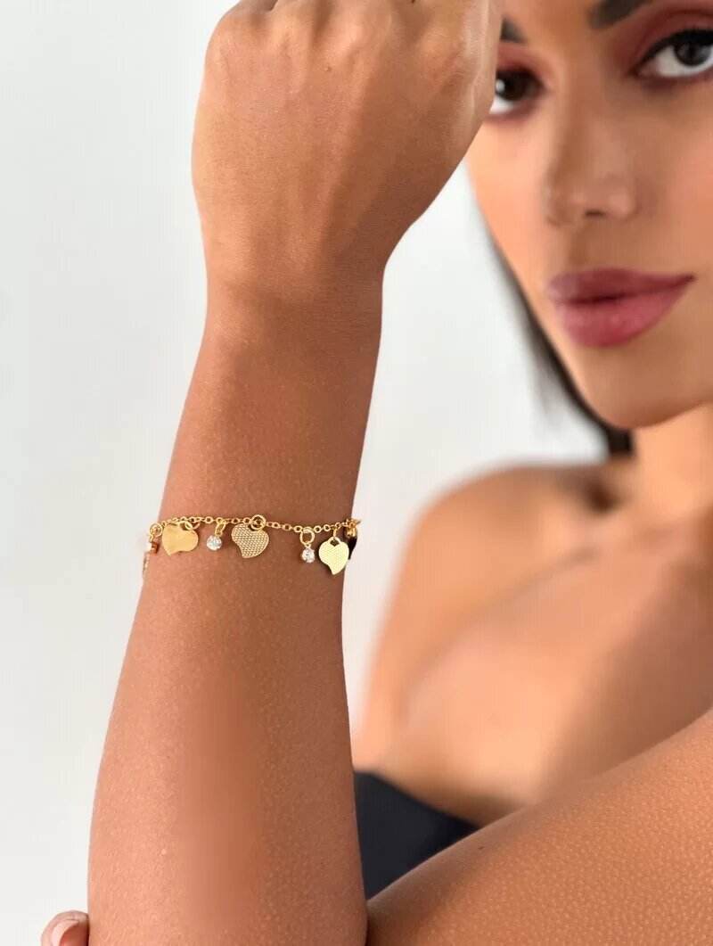 3. Pulseira Folheada a Ouro 18k Corações com Pontos de Luz