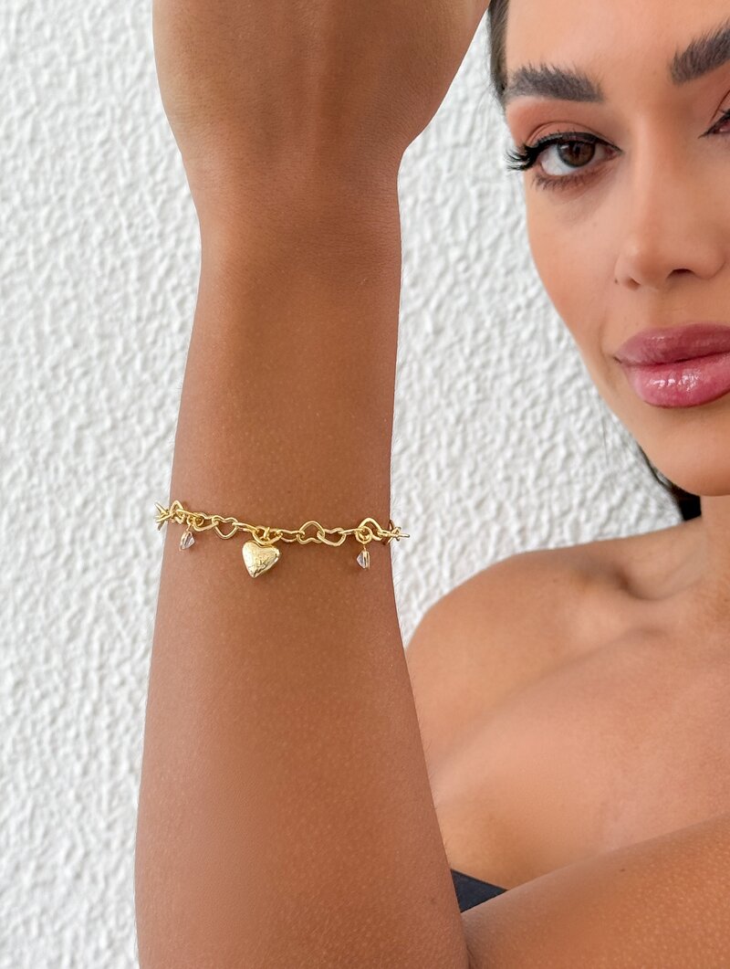 Pulseira Folheada a Ouro 18k Corações Vazados com Zircônias