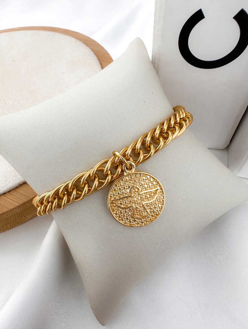 Pulseira Folheada a Ouro 18k Correntaria com Espírito Santo