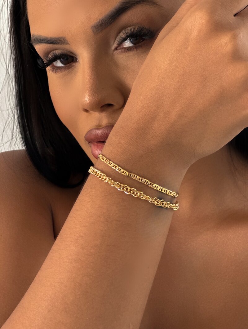 Pulseira Folheada a Ouro 18k Correntaria com Piastrine