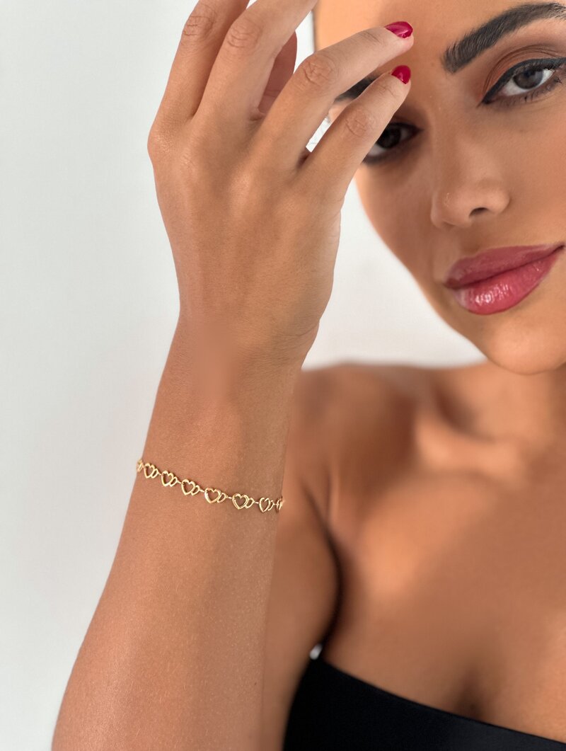 Pulseira Folheada a Ouro 18k Corrente de Corações Vazados