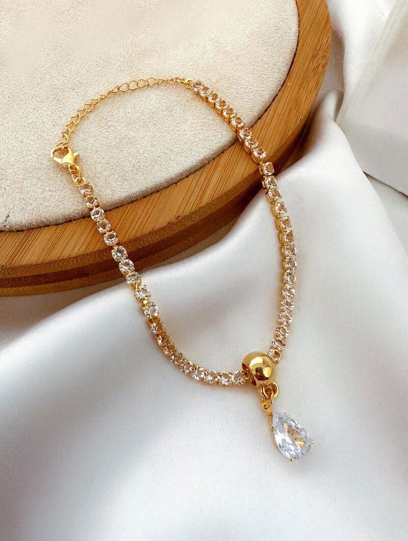 PULSEIRA FOLHEADA A OURO 18K CORRENTE DE MICRO ZIRCÔNIAS COM GOTA