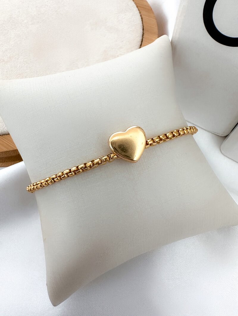 Pulseira Folheada a Ouro 18k Corrente Quadrada com Coração Liso