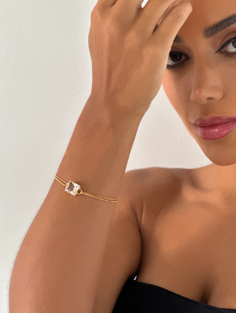 3. Pulseira Folheada a Ouro 18k Dois Fios com Pedra de Zircônia