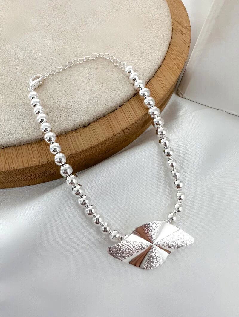 Pulseira Folheada a Ouro 18k e Prata 925 Esferas com Pingente Texturixado