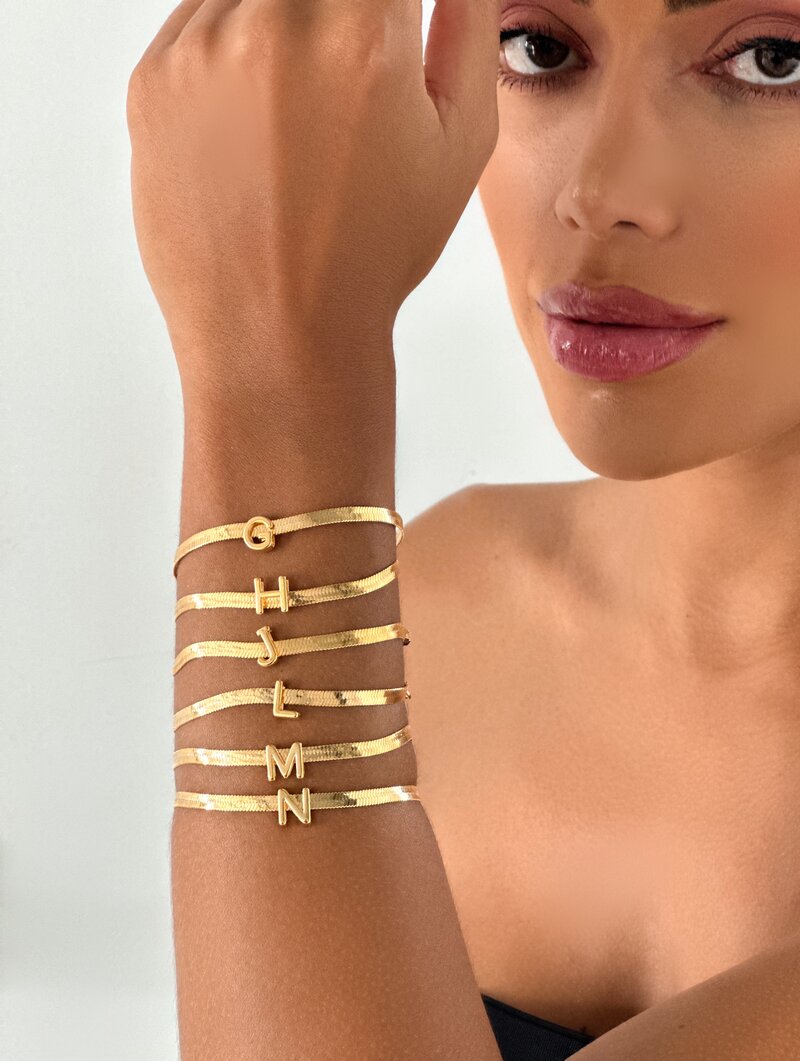 Pulseira Folheada a Ouro 18k e Prata 925 Fita Laminada com Inicial