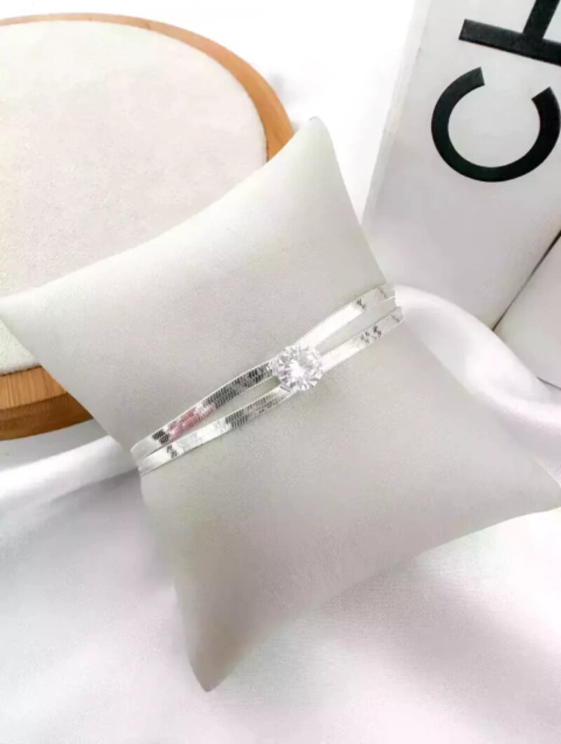 PULSEIRA FOLHEADA A OURO 18K E PRATA 925 FITA LAMINADA DUPLA COM PONTO DE LUZ.