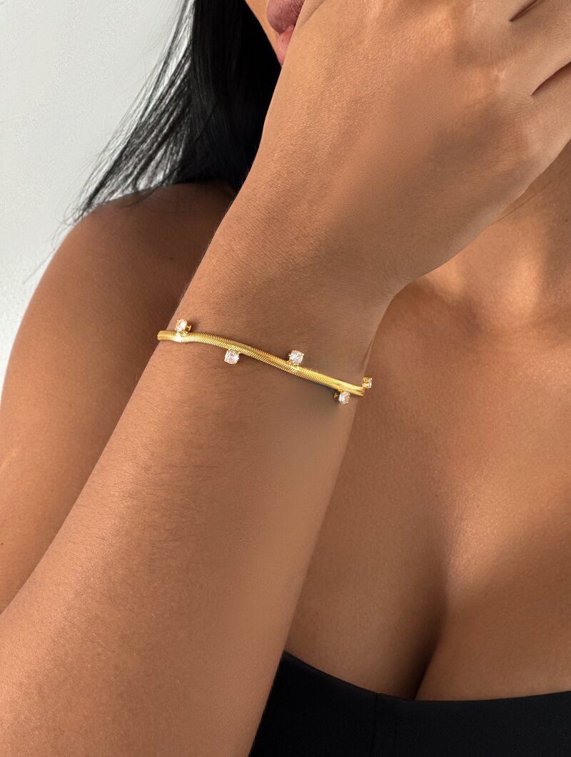 Pulseira Folheada a Ouro 18k e Prata 925 Malha com Zircônias