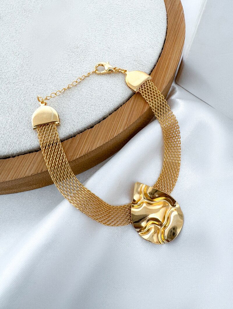 Pulseira Folheada a Ouro 18k e Prata 925 Manta com Gota Martelada