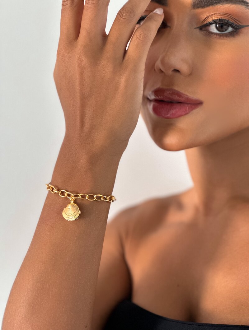 3. Pulseira Folheada a Ouro 18k e Prata 925 Pingente Concha