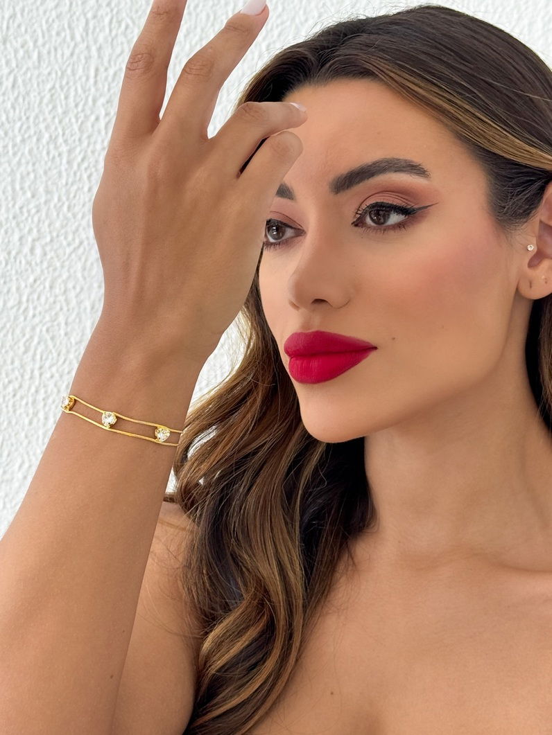 2. Pulseira Folheada a Ouro 18k e Prata Corações de Cristal