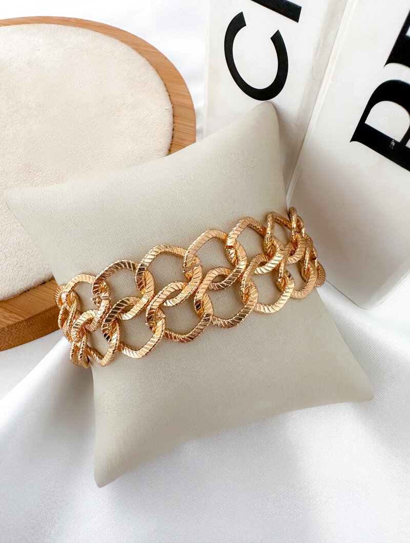 3. pulseira folheada a ouro 18k e prata elo duplo trabalhado