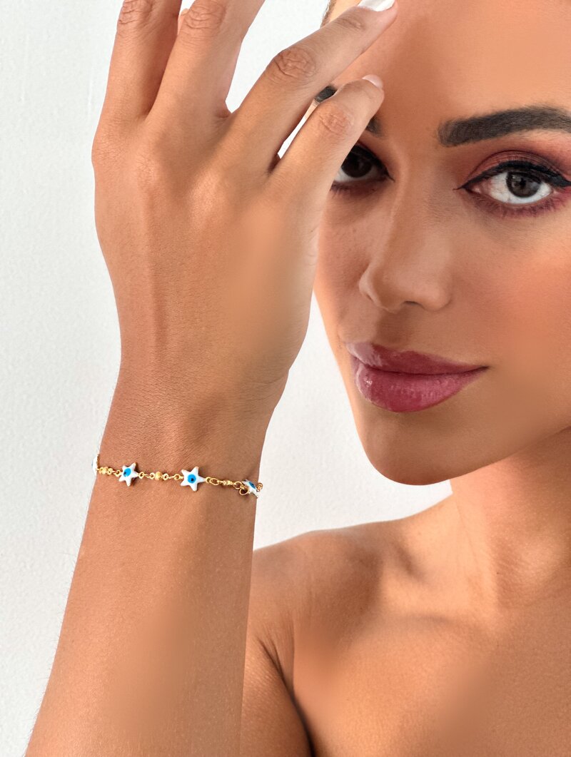 3. Pulseira Folheada a Ouro 18k e Prata Estrela com Olho Grego