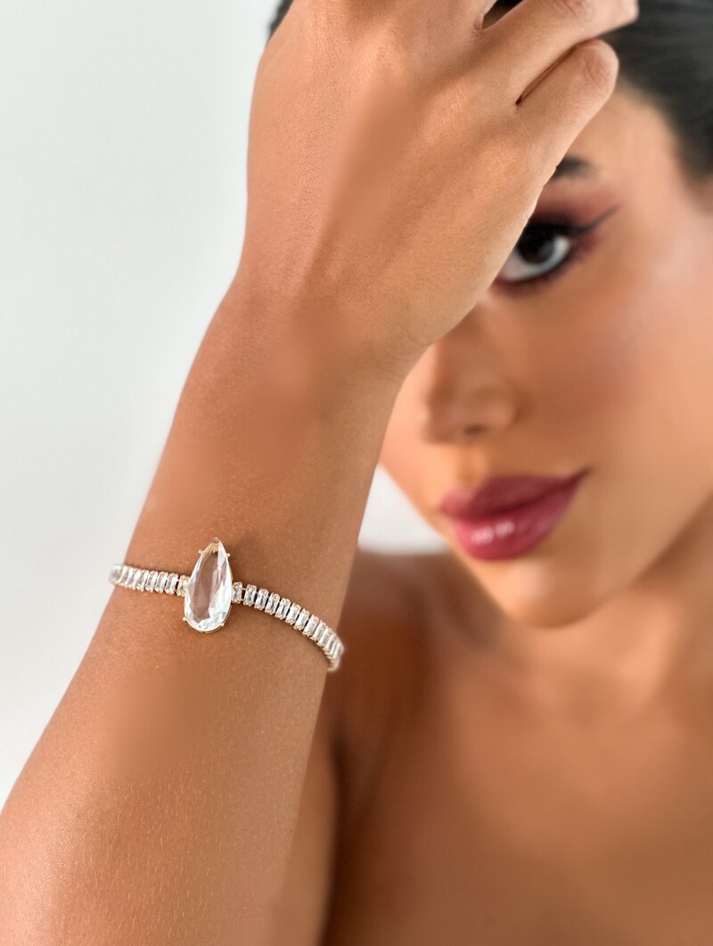 3. Pulseira Folheada a Ouro 18k e Prata Navetes com Gota de Zircônia
