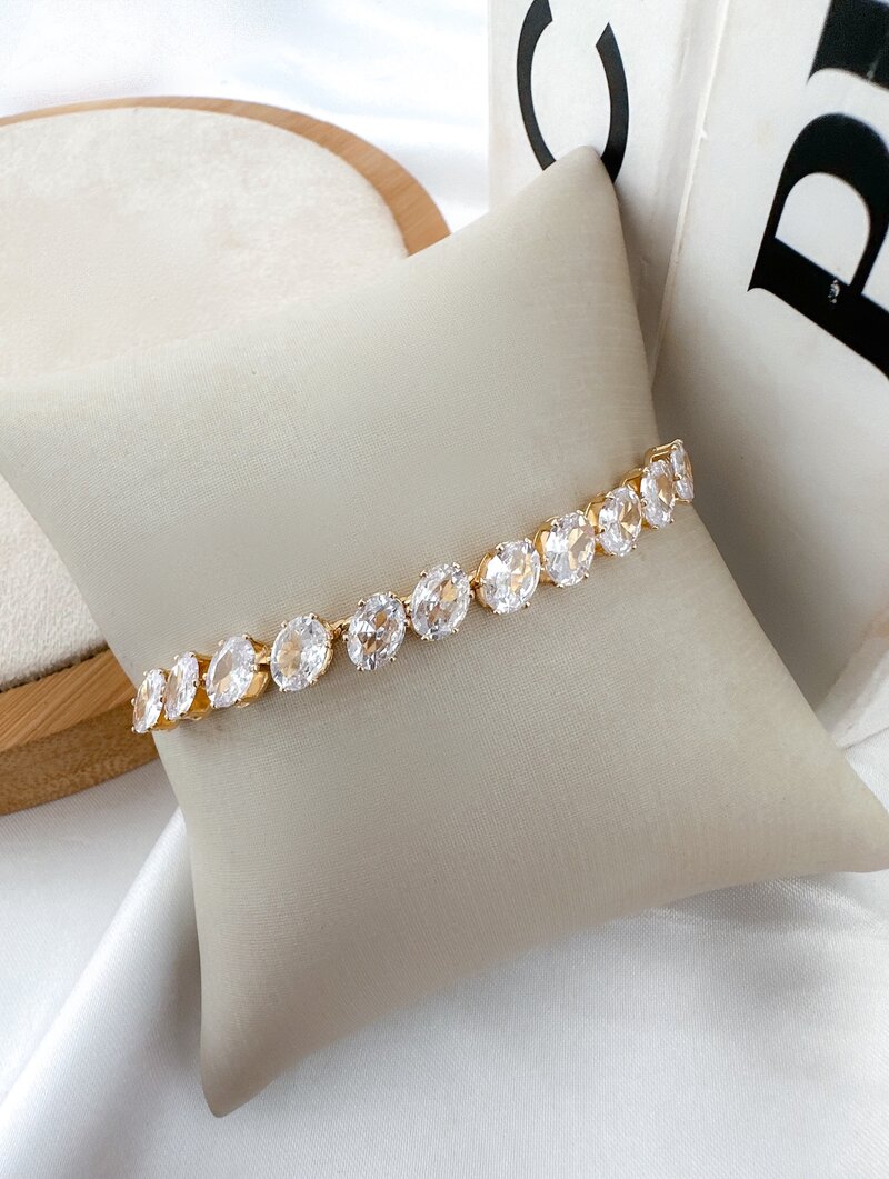 Pulseira Folheada a Ouro 18k e Prata Zircônias Ovais