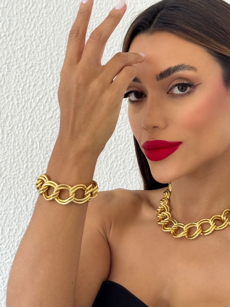 2. Pulseira Folheada a Ouro 18k Elos Duplos