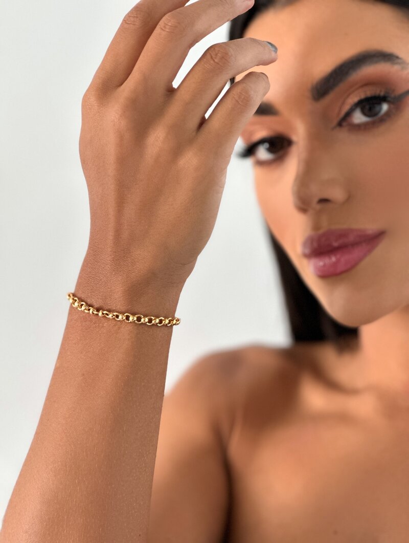 3. Pulseira Folheada a Ouro 18k Elos Redondos com Esferas