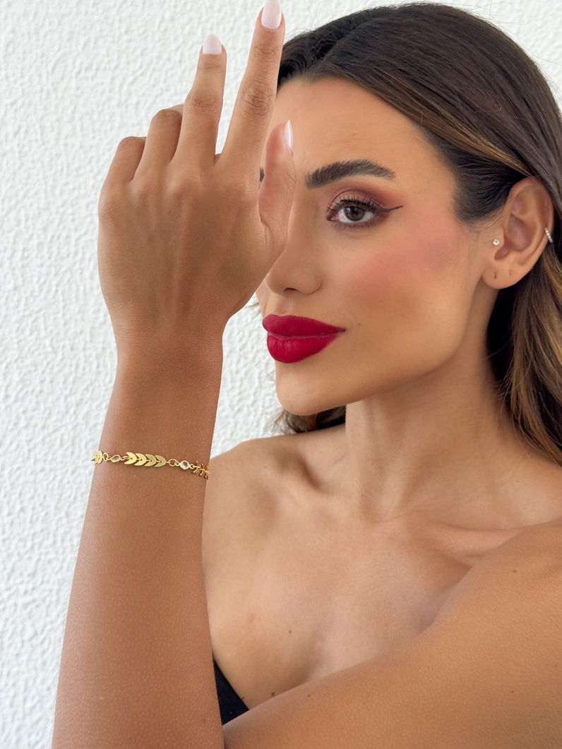 2. Pulseira Folheada a Ouro 18k Escamas Com Cristal