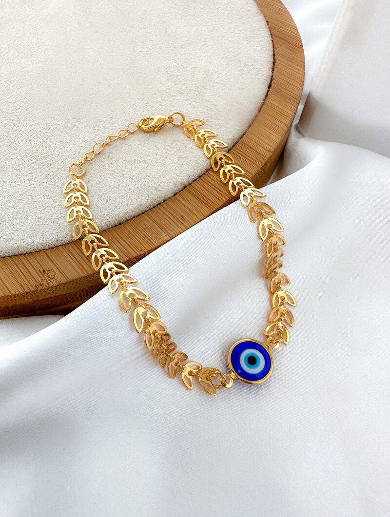 pulseira folheada a ouro 18k escamas com olho grego