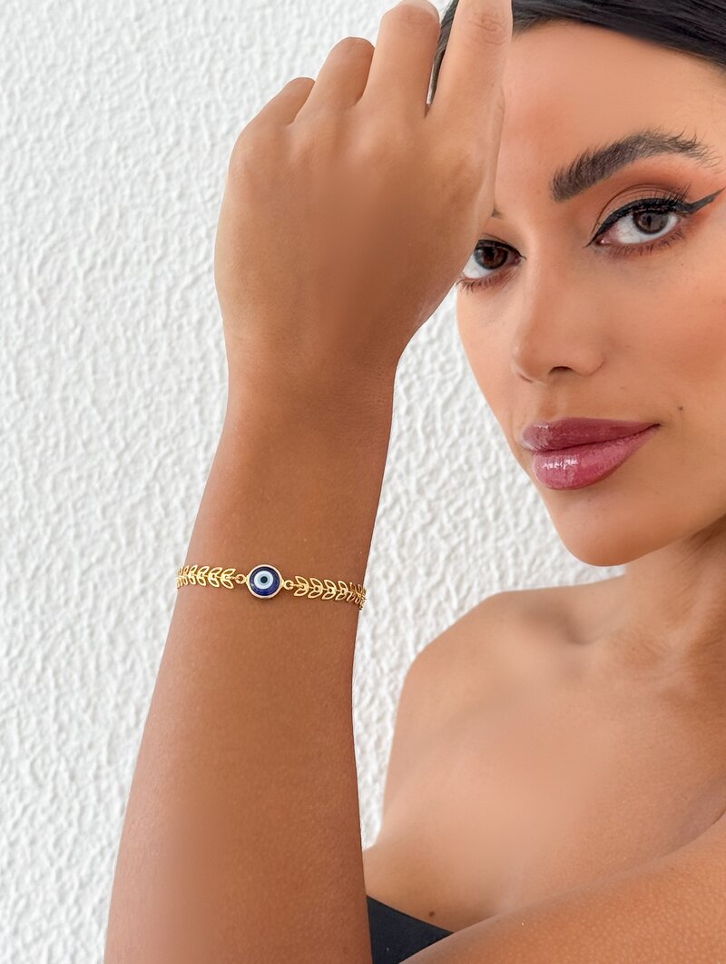 3. Pulseira Folheada a Ouro 18k Escamas com Olho Grego