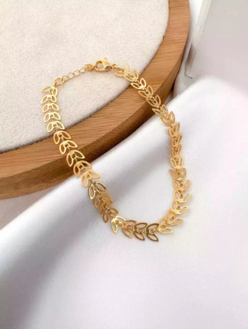3. PULSEIRA FOLHEADA A OURO 18K ESCAMAS FOLHAS.