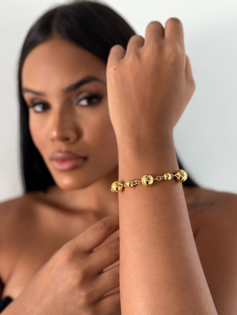 Pulseira Folheada a Ouro 18k Esferas Lisas