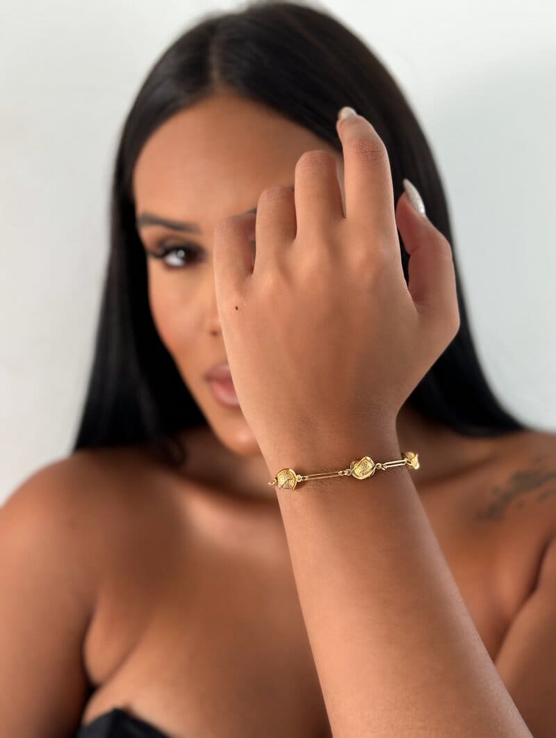 3. Pulseira Folheada a Ouro 18k Esferas Texturizadas com Entremeios