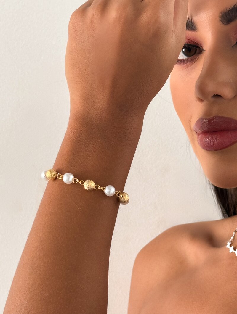 3. Pulseira Folheada a Ouro 18k Esferas Texturizadas com Pérolas