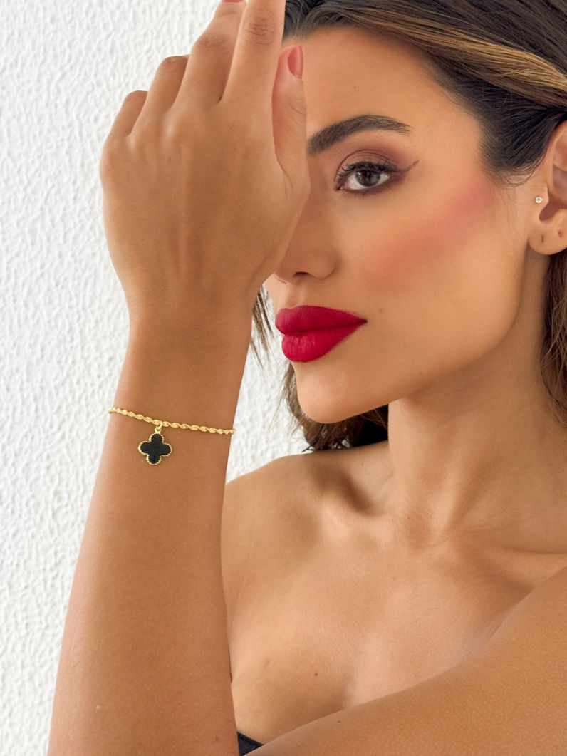 Pulseira Folheada a Ouro 18k Fio Torcido e Inspiração Vg Preto