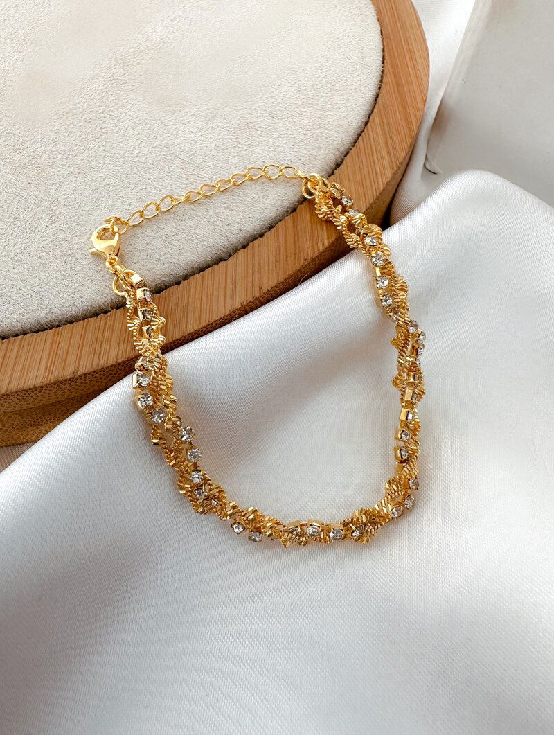 3. Pulseira Folheada a Ouro 18k Fios Torcidos com Micro Zircônias