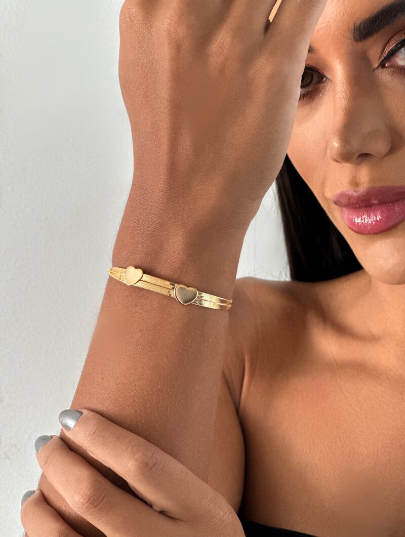 Pulseira Folheada a Ouro 18k Fita Laminada com Coração