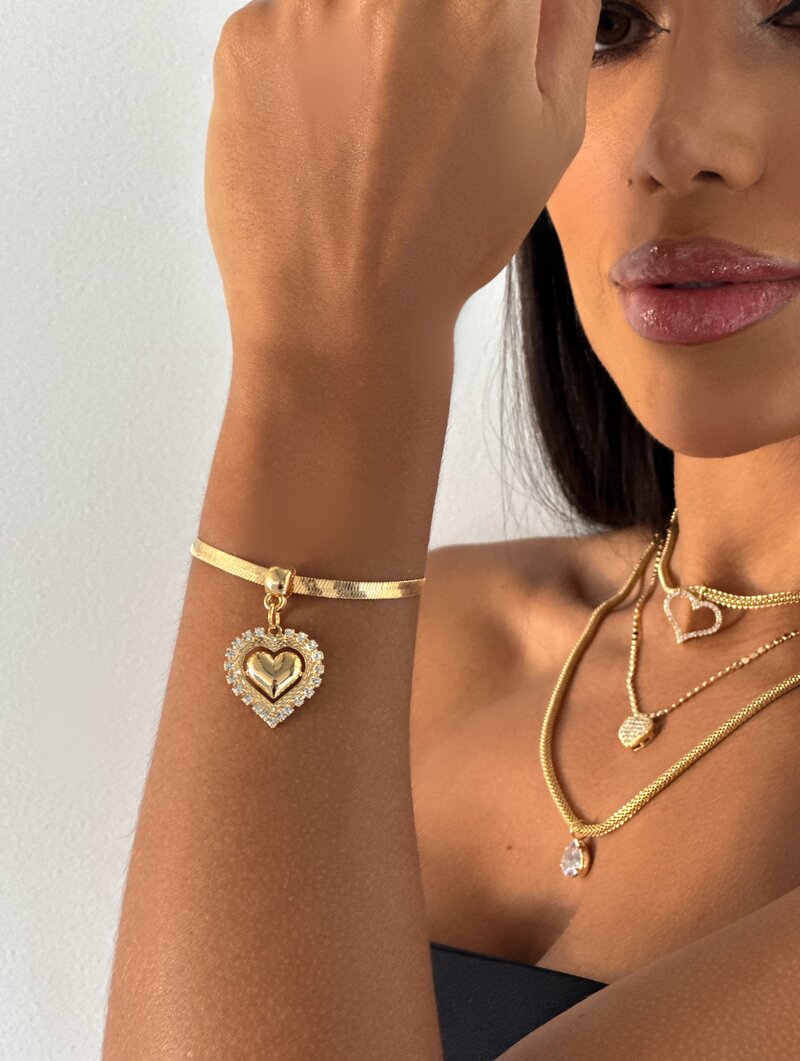 Pulseira Folheada a Ouro 18k Fita Laminada com Coração Trabalhado