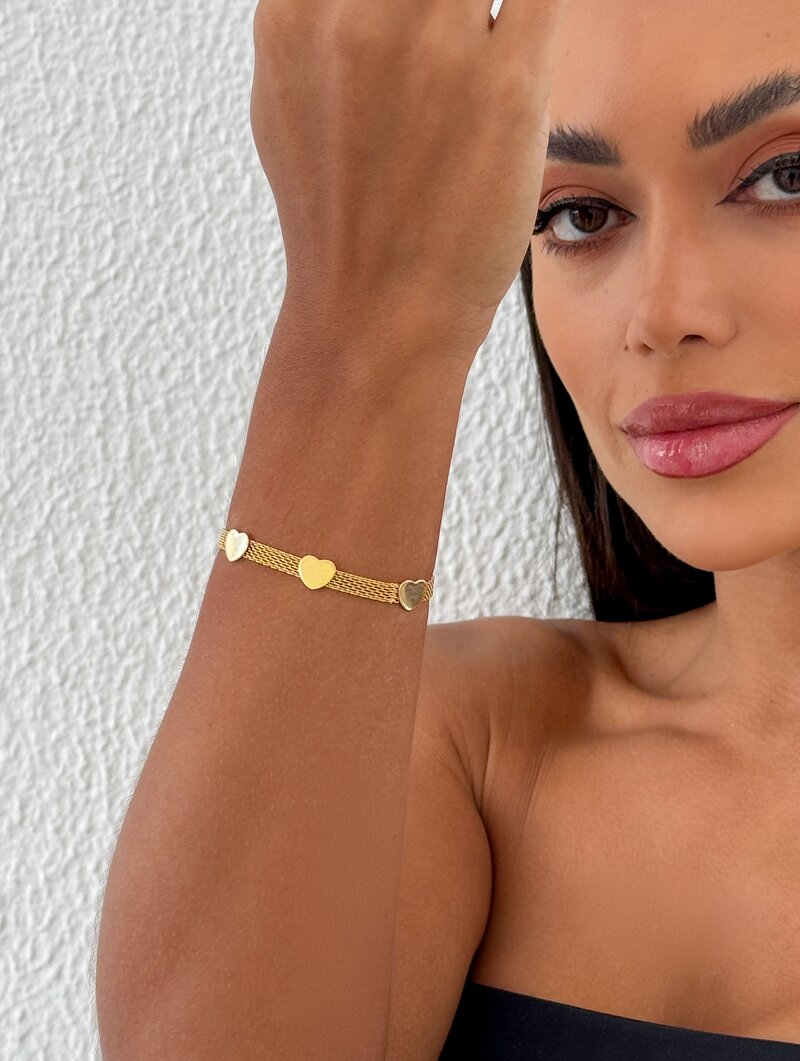 3. Pulseira Folheada a Ouro 18k Manta com Corações Lisos